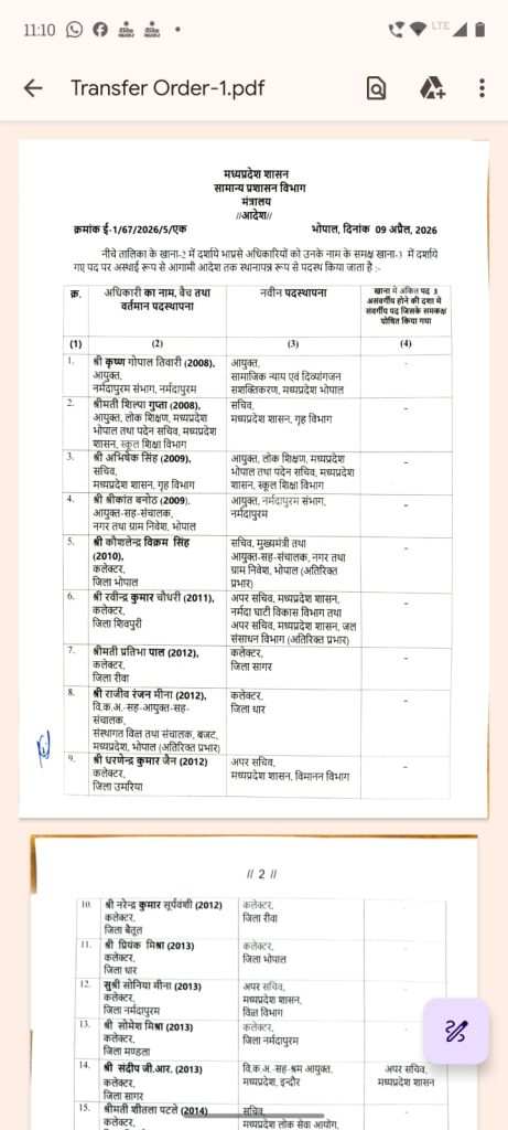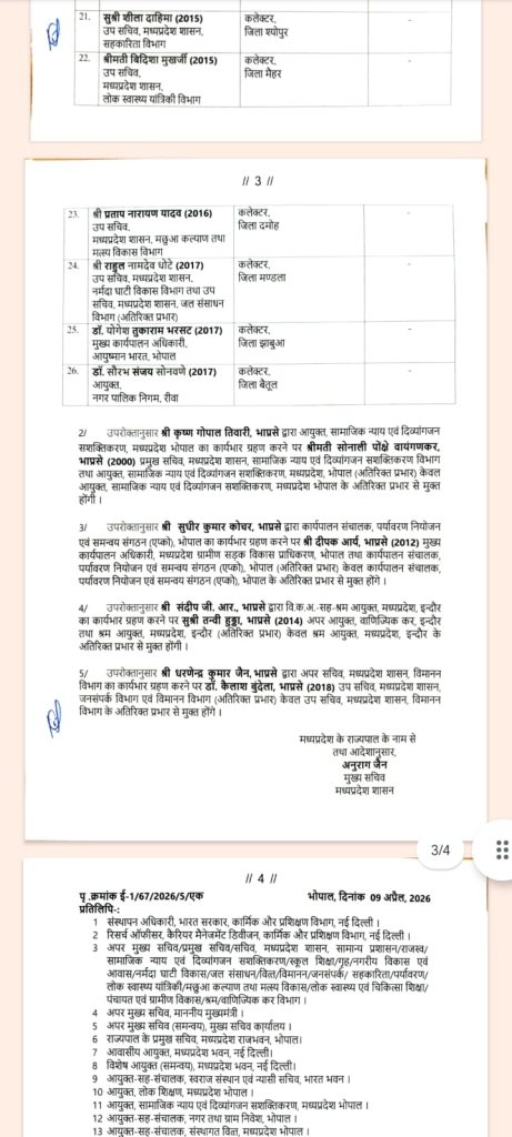 रीवा अकेला जिला नहीं है जहां बदलाव हुआ है। सरकार ने एक साथ कई जिलों में प्रशासनिक ढांचा बदल दिया है। सागर, धार, भोपाल, नर्मदापुरम, सिवनी, शिवपुरी, उमरिया, श्योपुर, मैहर, दमोह, मंडला, झाबुआ और बैतूल जैसे जिलों में भी नए कलेक्टर तैनात किए गए हैं।